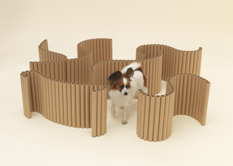 在他为蝴蝶犬设计的这款住宅里,一如既往地利用黏合在一起的圆柱形纸管为狗狗打造出私人空间,既环保,又可随心所欲地对形状作出各种变化。